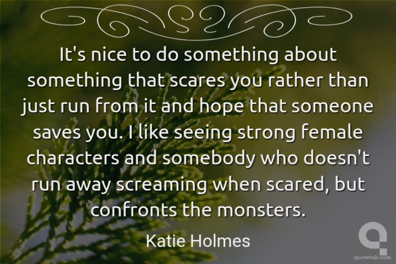 It's nice to do something about something that scares you rather than just run from it and hope that someone saves you. I like seeing strong female characters and somebody who doesn't run away screaming when scared, but confronts the monsters.