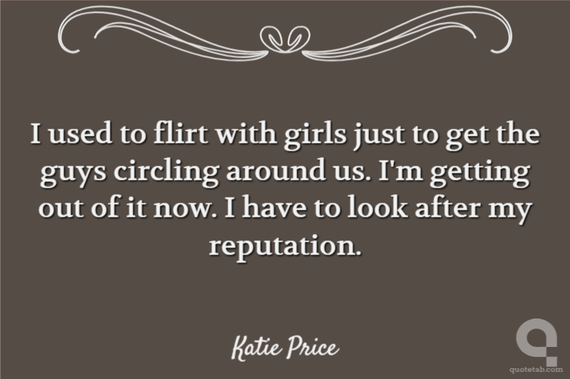 I used to flirt with girls just to get the guys circling around us. I'm getting out of it now. I have to look after my reputation.