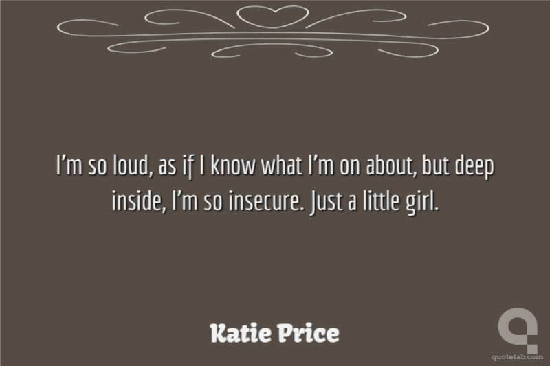 I'm so loud, as if I know what I'm on about, but deep inside, I'm so insecure. Just a little girl.