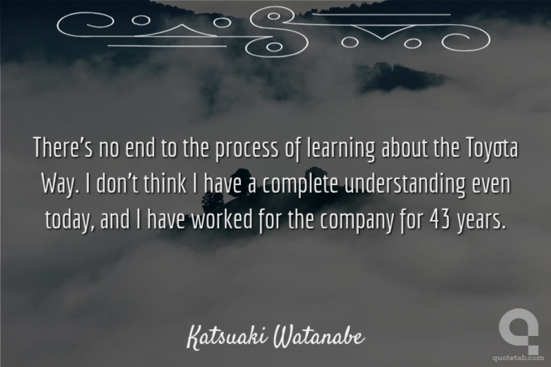 There's no end to the process of learning about the Toyota Way. I don't think I have a complete understanding even today, and I have worked for the company for 43 years.