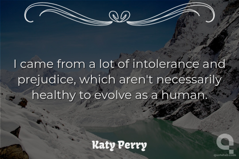 I came from a lot of intolerance and prejudice, which aren't necessarily healthy to evolve as a human.