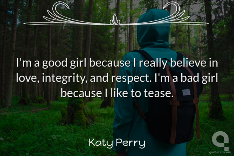 I'm a good girl because I really believe in love, integrity, and respect.