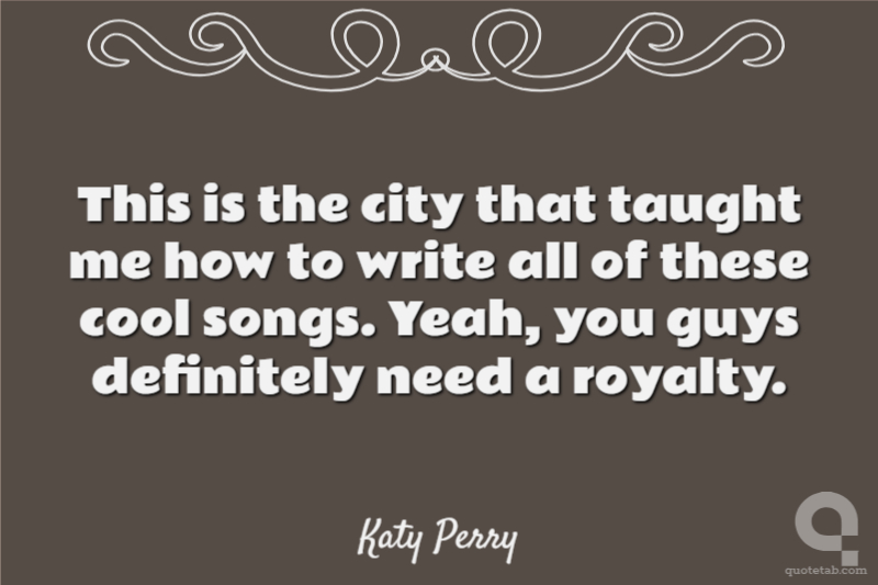 This is the city that taught me how to write all of these cool songs. Yeah, you guys definitely need a royalty.