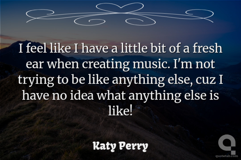 I feel like I have a little bit of a fresh ear when creating music. I'm not trying to be like anything else, cuz I have no idea what anything else is like!