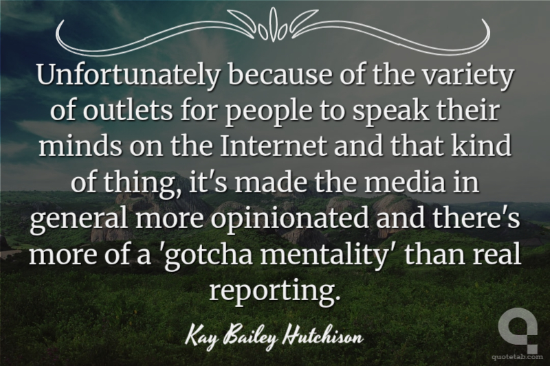 Unfortunately because of the variety of outlets for people to speak their minds on the Internet and that kind of thing, it's made the media in general more opinionated and there's more of a 'gotcha mentality' than real reporting.