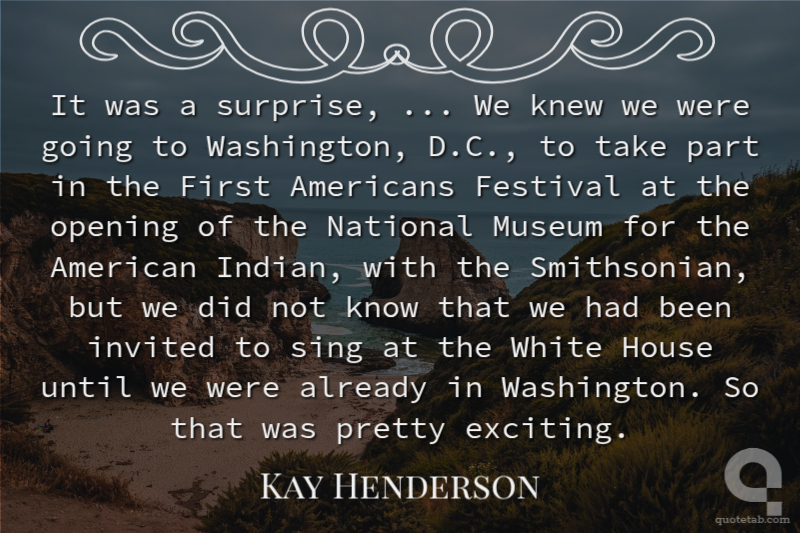 It was a surprise, ... We knew we were going to Washington, D.C., to take part in the First Americans Festival at the opening of the National Museum for the American Indian, with the Smithsonian, but we did not know that we had been invited to sing at the White House until we were already in Washington. So that was pretty exciting.