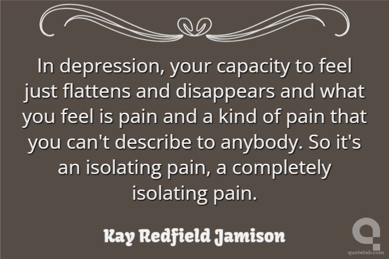In depression, your capacity to feel just flattens and disappears and what you feel is pain and a kind of pain that you can't describe to anybody. So it's an isolating pain, a completely isolating pain.