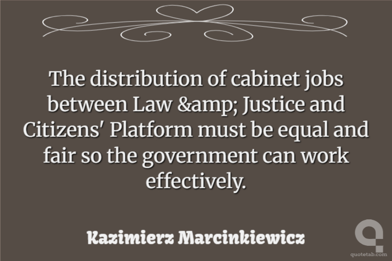 The distribution of cabinet jobs between Law & Justice and Citizens' Platform must be equal and fair so the government can work effectively.