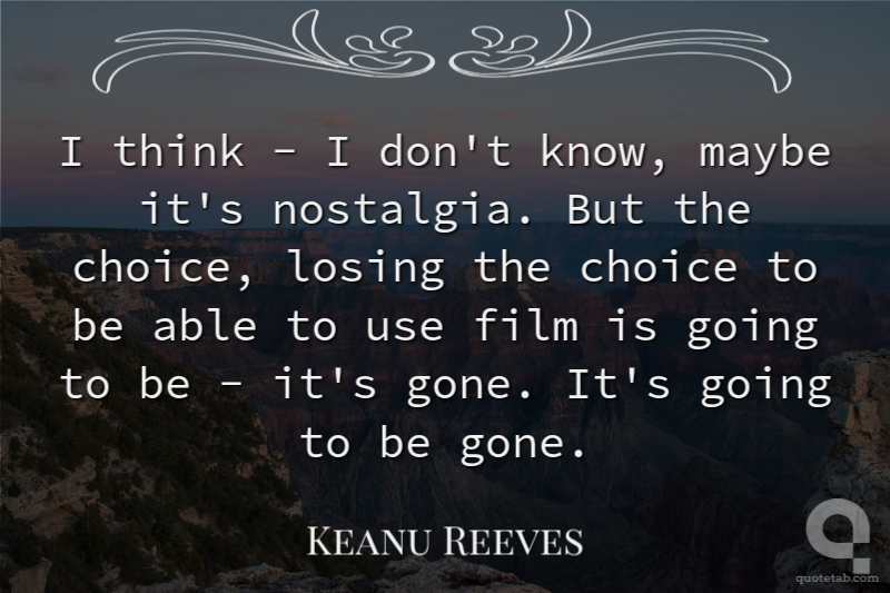 I think - I don't know, maybe it's nostalgia. But the choice, losing the choice to be able to use film is going to be - it's gone. It's going to be gone.
