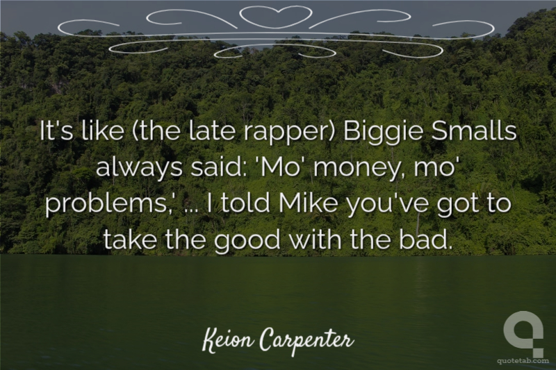It's like (the late rapper) Biggie Smalls always said: 'Mo' money, mo' problems,' ... I told Mike you've got to take the good with the bad.