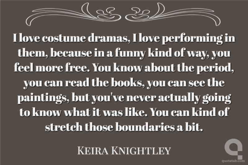 I love costume dramas, I love performing in them, because in a funny kind of way, you feel more free. You know about the period, you can read the books, you can see the paintings, but you've never actually going to know what it was like. You can kind of stretch those boundaries a bit.