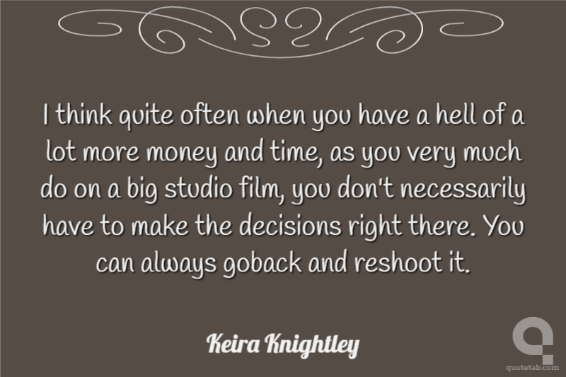 I think quite often when you have a hell of a lot more money and time, as you very much do on a big studio film, you don't necessarily have to make the decisions right there. You can always goback and reshoot it.