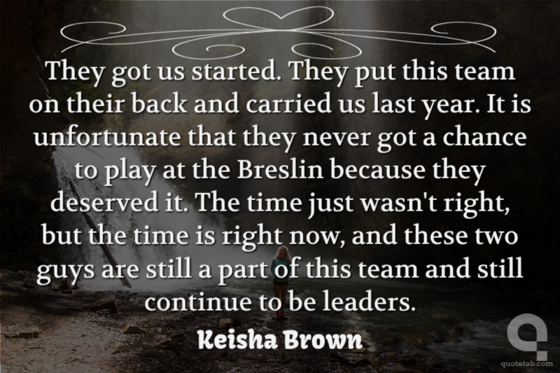 They got us started. They put this team on their back and carried us last year. It is unfortunate that they never got a chance to play at the Breslin because they deserved it. The time just wasn't right, but the time is right now, and these two guys are still a part of this team and still continue to be leaders.