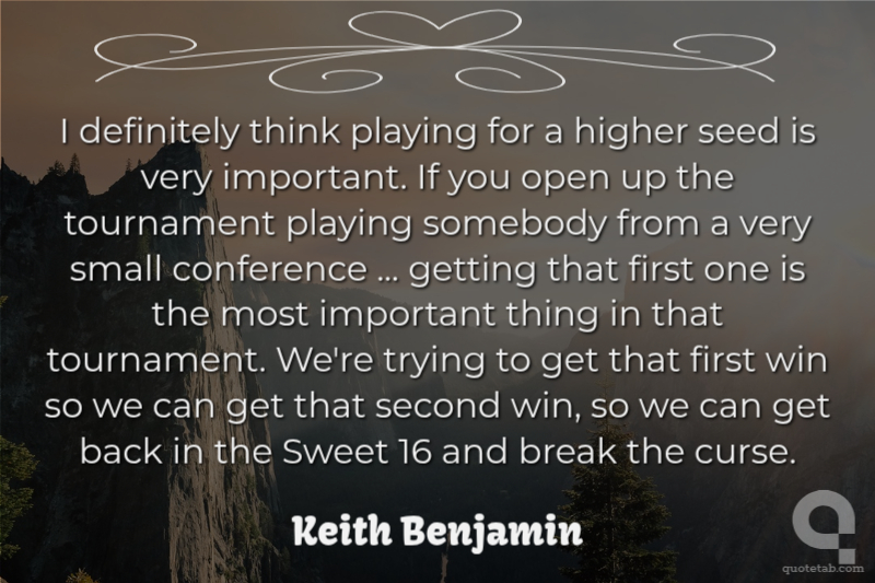 I definitely think playing for a higher seed is very important. If you open up the tournament playing somebody from a very small conference ... getting that first one is the most important thing in that tournament. We're trying to get that first win so we can get that second win, so we can get back in the Sweet 16 and break the curse.