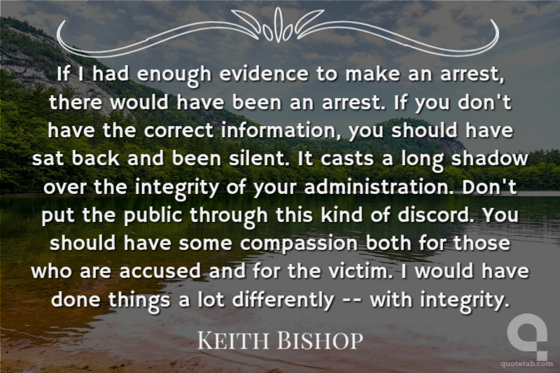 If I had enough evidence to make an arrest, there would have been an arrest. If you don't have the correct information, you should have sat back and been silent. It casts a long shadow over the integrity of your administration. Don't put the public through this kind of discord. You should have some compassion both for those who are accused and for the victim. I would have done things a lot differently -- with integrity.