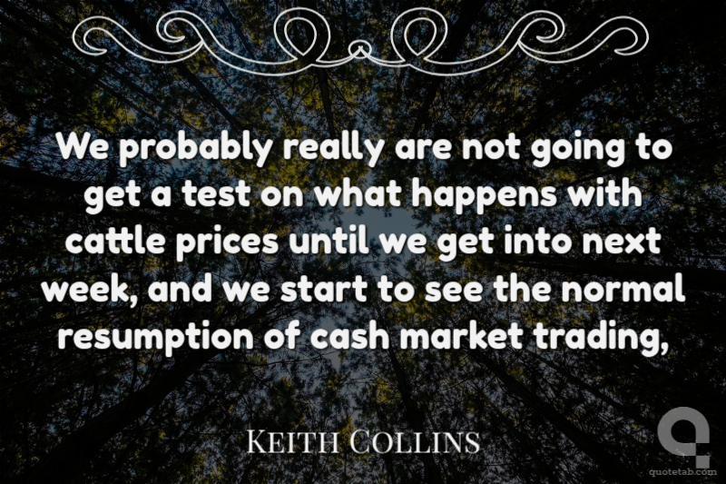 We probably really are not going to get a test on what happens with cattle prices until we get into next week, and we start to see the normal resumption of cash market trading,