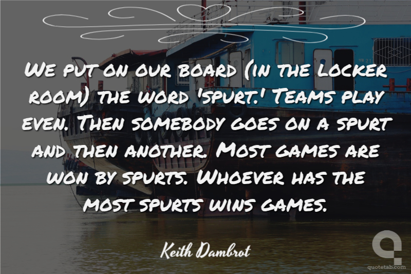 We put on our board (in the locker room) the word 'spurt.' Teams play even. Then somebody goes on a spurt and then another. Most games are won by spurts. Whoever has the most spurts wins games.