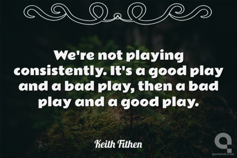 We're not playing consistently. It's a good play and a bad play, then a bad play and a good play.