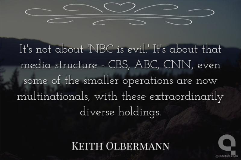 It's not about 'NBC is evil.' It's about that media structure - CBS, ABC, CNN, even some of the smaller operations are now multinationals, with these extraordinarily diverse holdings.