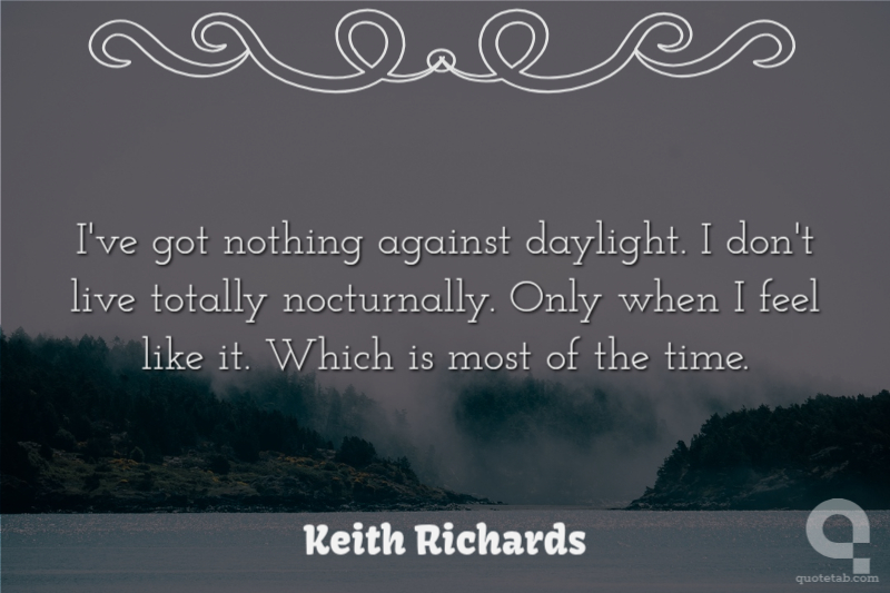 I've got nothing against daylight. I don't live totally nocturnally. Only when I feel like it. Which is most of the time.