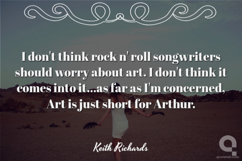 I don't think rock n' roll songwriters should worry about art. I don't think it comes into it...as far as I'm concerned, Art is just short for Arthur.