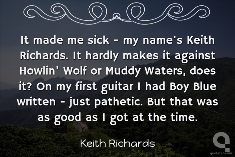 It made me sick - my name's Keith Richards. It hardly makes it against Howlin' Wolf or Muddy Waters, does it? On my first guitar I had Boy Blue written - just pathetic. But that was as good as I got at the time.