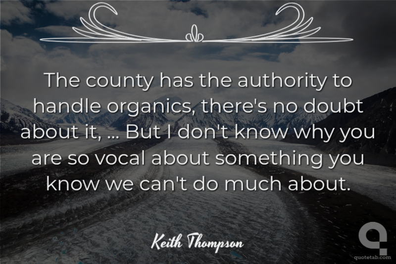 The county has the authority to handle organics, there's no doubt about it, ... But I don't know why you are so vocal about something you know we can't do much about.