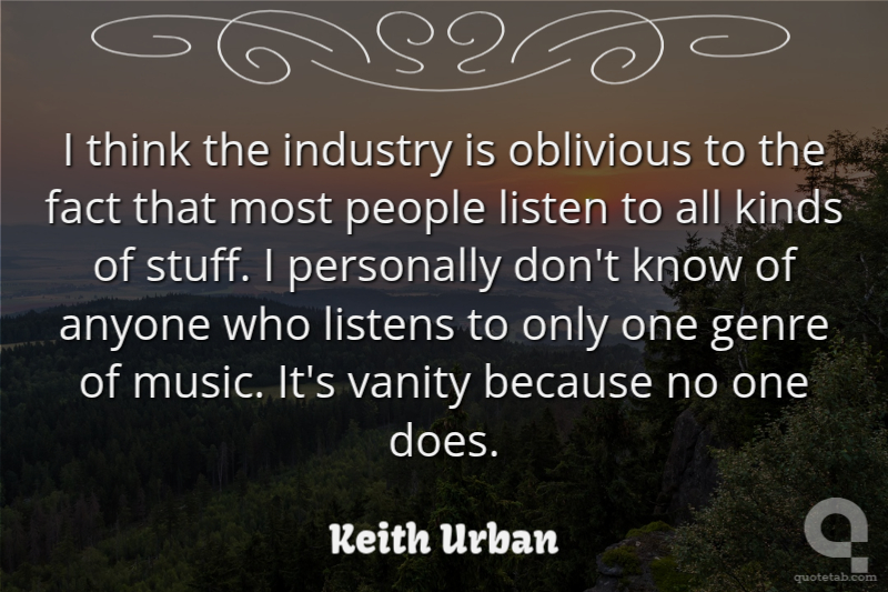 I think the industry is oblivious to the fact that most people listen to all kinds of stuff. I personally don't know of anyone who listens to only one genre of music. It's vanity because no one does.