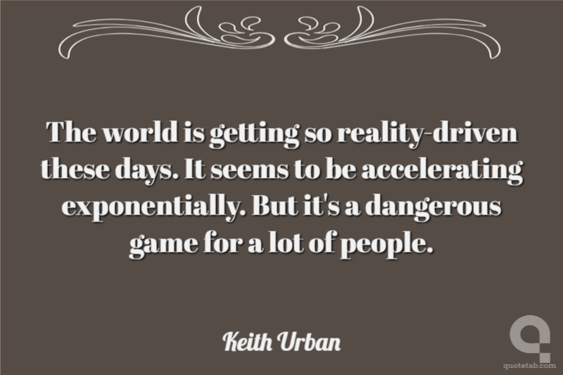 The world is getting so reality-driven these days. It seems to be accelerating exponentially. But it's a dangerous game for a lot of people.