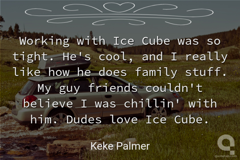Working with Ice Cube was so tight. He's cool, and I really like how he does family stuff. My guy friends couldn't believe I was chillin' with him. Dudes love Ice Cube.