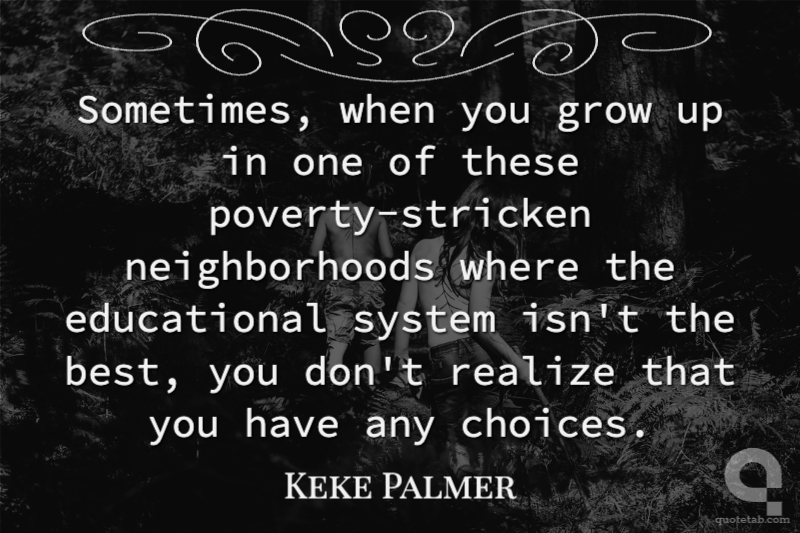 Sometimes, when you grow up in one of these poverty-stricken neighborhoods where the educational system isn't the best, you don't realize that you have any choices.