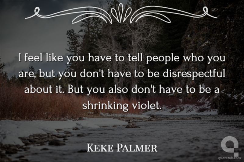I feel like you have to tell people who you are, but you don't have to be disrespectful about it. But you also don't have to be a shrinking violet.