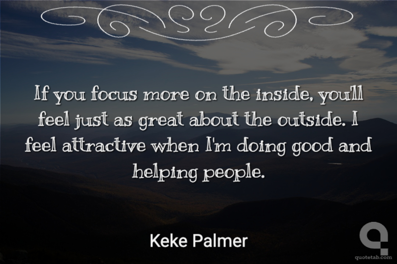 If you focus more on the inside, you'll feel just as great about the outside. I feel attractive when I'm doing good and helping people.