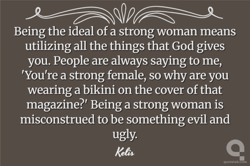 Being the ideal of a strong woman means utilizing all the things that God gives you. People are always saying to me, 'You're a strong female, so why are you wearing a bikini on the cover of that magazine?' Being a strong woman is misconstrued to be something evil and ugly.
