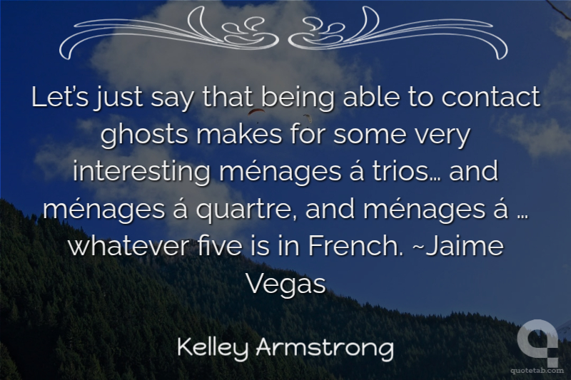 Let’s just say that being able to contact ghosts makes for some very interesting ménages á trios… and ménages á quartre, and ménages á … whatever five is in French. ~Jaime Vegas