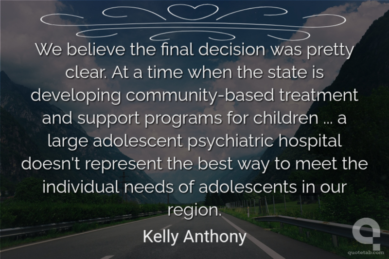 We believe the final decision was pretty clear. At a time when the state is developing community-based treatment and support programs for children ... a large adolescent psychiatric hospital doesn't represent the best way to meet the individual needs of adolescents in our region.