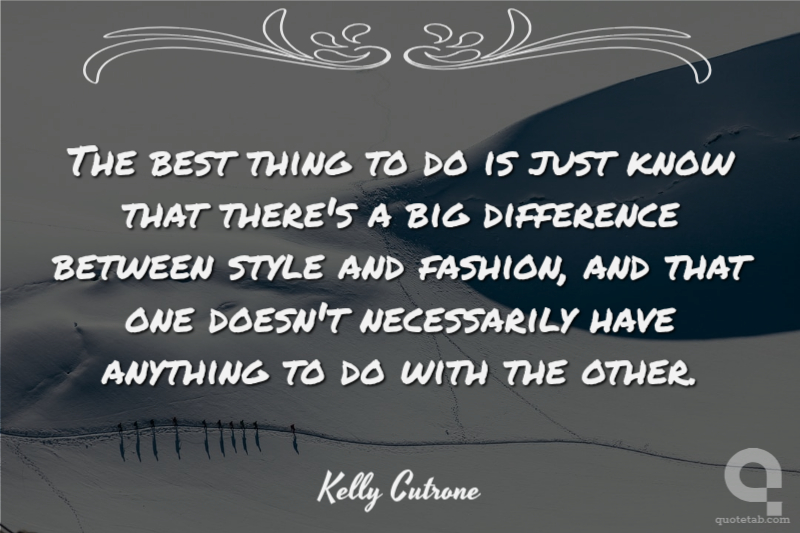 The best thing to do is just know that there's a big difference between style and fashion, and that one doesn't necessarily have anything to do with the other.