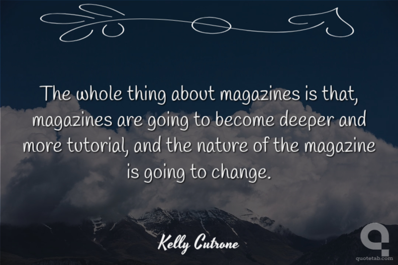 The whole thing about magazines is that, magazines are going to become deeper and more tutorial, and the nature of the magazine is going to change.