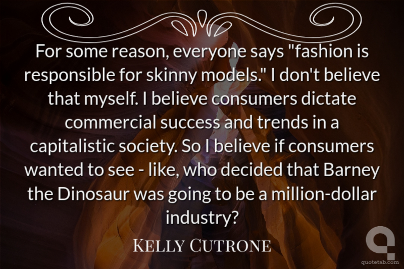 For some reason, everyone says "fashion is responsible for skinny models." I don't believe that myself. I believe consumers dictate commercial success and trends in a capitalistic society. So I believe if consumers wanted to see - like, who decided that Barney the Dinosaur was going to be a million-dollar industry?