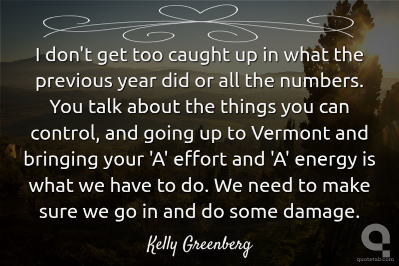 I don't get too caught up in what the previous year did or all the numbers. You talk about the things you can control, and going up to Vermont and bringing your 'A' effort and 'A' energy is what we have to do. We need to make sure we go in and do some damage.