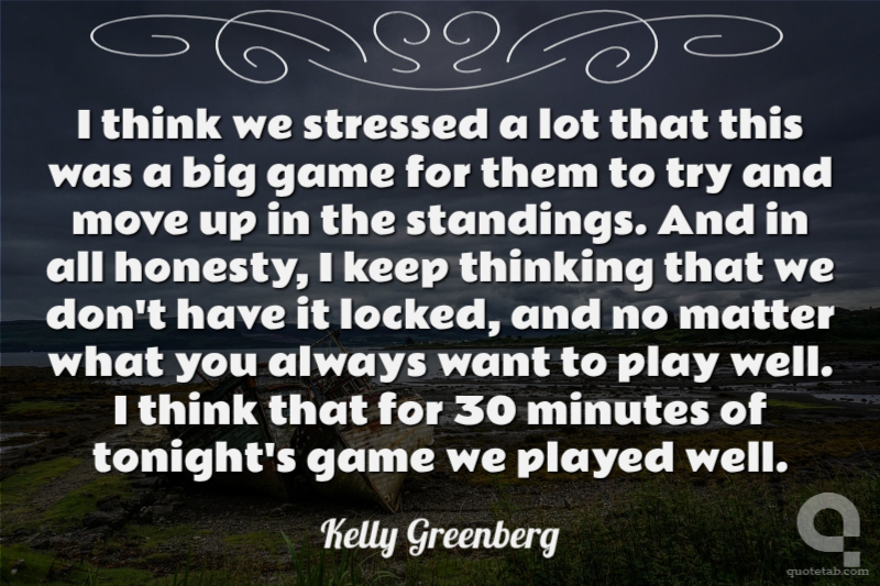 I think we stressed a lot that this was a big game for them to try and move up in the standings. And in all honesty, I keep thinking that we don't have it locked, and no matter what you always want to play well. I think that for 30 minutes of tonight's game we played well.