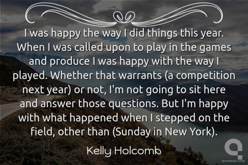 I was happy the way I did things this year. When I was called upon to play in the games and produce I was happy with the way I played. Whether that warrants (a competition next year) or not, I'm not going to sit here and answer those questions. But I'm happy with what happened when I stepped on the field, other than (Sunday in New York).