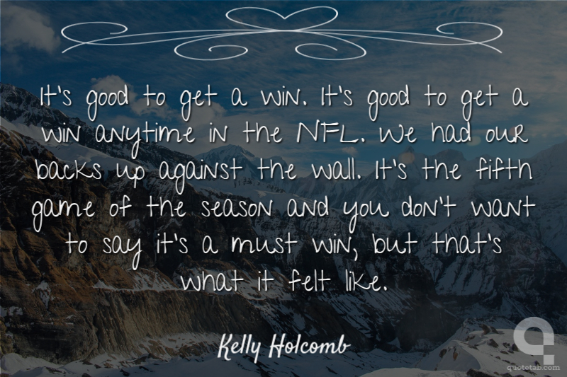It's good to get a win. It's good to get a win anytime in the NFL. We had our backs up against the wall. It's the fifth game of the season and you don't want to say it's a must win, but that's what it felt like.