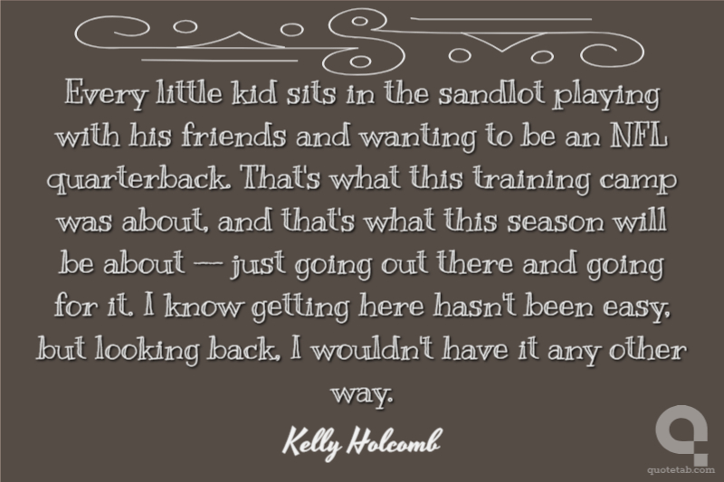 Every little kid sits in the sandlot playing with his friends and wanting to be an NFL quarterback. That's what this training camp was about, and that's what this season will be about -- just going out there and going for it. I know getting here hasn't been easy, but looking back, I wouldn't have it any other way.