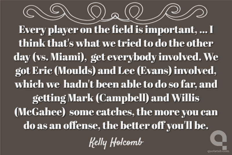 Every player on the field is important, ... I think that's what we tried to do the other day (vs. Miami), get everybody involved. We got Eric (Moulds) and Lee (Evans) involved, which we hadn't been able to do so far, and getting Mark (Campbell) and Willis (McGahee) some catches, the more you can do as an offense, the better off you'll be.