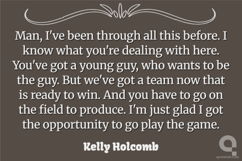 Man, I've been through all this before. I know what you're dealing with here. You've got a young guy, who wants to be the guy. But we've got a team now that is ready to win. And you have to go on the field to produce. I'm just glad I got the opportunity to go play the game.