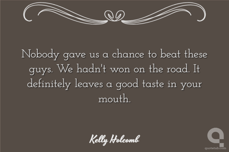 Nobody gave us a chance to beat these guys. We hadn't won on the road. It definitely leaves a good taste in your mouth.