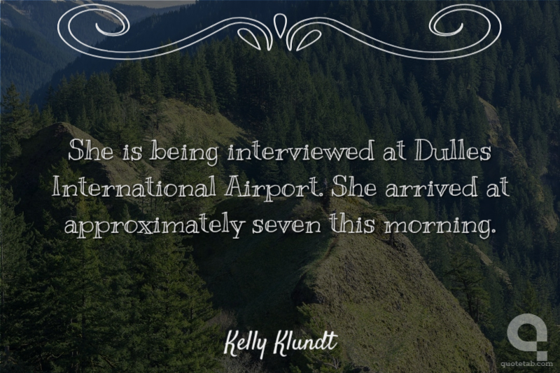 She is being interviewed at Dulles International Airport. She arrived at approximately seven this morning.