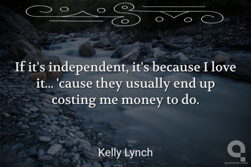 If it's independent, it's because I love it... 'cause they usually end up costing me money to do.