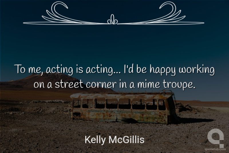 To me, acting is acting, ... I'd be happy working on a street corner in a mime troupe.